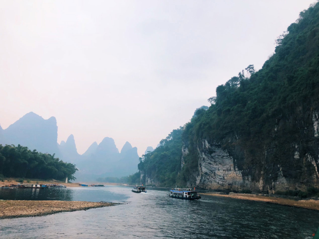 來到漓江,蒙蒙細(xì)雨早已不見蹤影,取而代之的是溫暖的陽光,仿佛為了歡迎遠(yuǎn)道而來的我們。