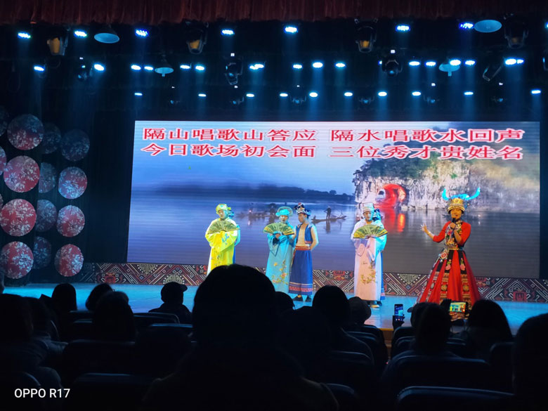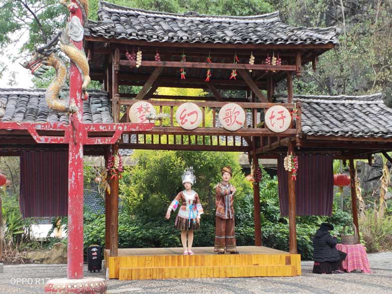 參觀以壯族歌仙劉三姐命名的【劉三姐大觀園】,是展示劉三姐生活、故事的實(shí)景地,主要由廣西民族風(fēng)情和劉三姐文化兩大主題游覽項(xiàng)目組成。 景區(qū)的主要景點(diǎn)有金蟾對(duì)歌臺(tái)、夢(mèng)幻歌圩、侗家歌臺(tái)、劉三姐與阿牛哥定情誓約的百年古榕,還有風(fēng)雨長廊、壯寨干欄、瑤寨木樓、侗族鼓樓、苗族吊角樓等各類民族建筑及廣西各種民族服飾。