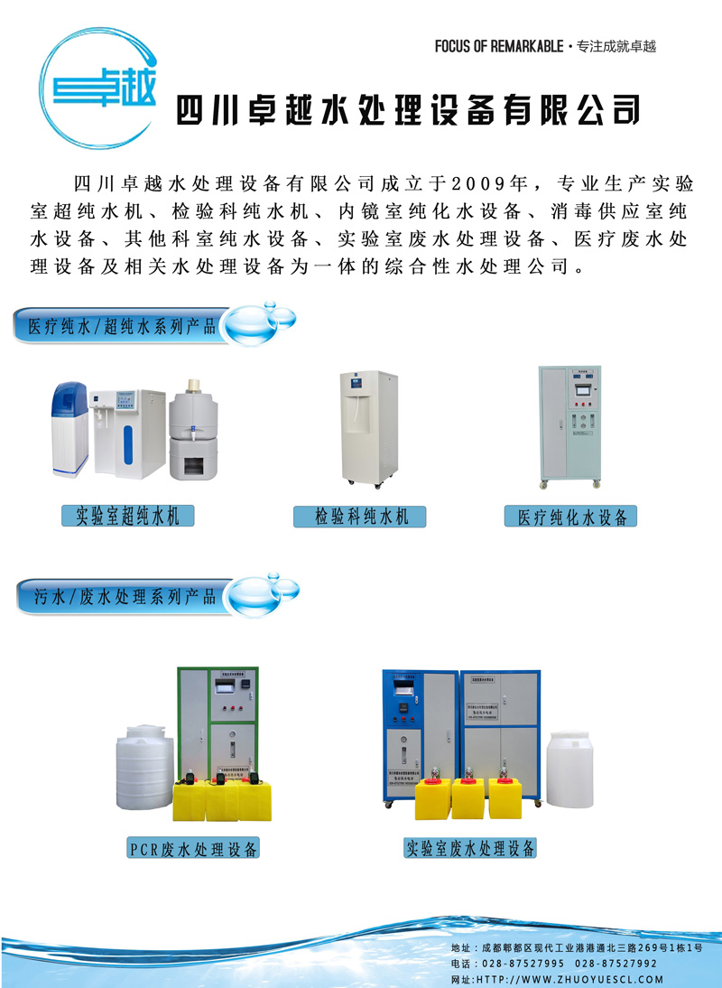 本次卓越攜全新常規(guī)分析型ZYCGF、微信分析型ZYMICRO、高端超級微量分析型ZYPFT系列實驗室超純水機,醫(yī)院內(nèi)鏡室ZYNJQX、供應(yīng)室ZYQX純水機,PCR實驗室、綜合實驗室廢水處理設(shè)備亮相展會。