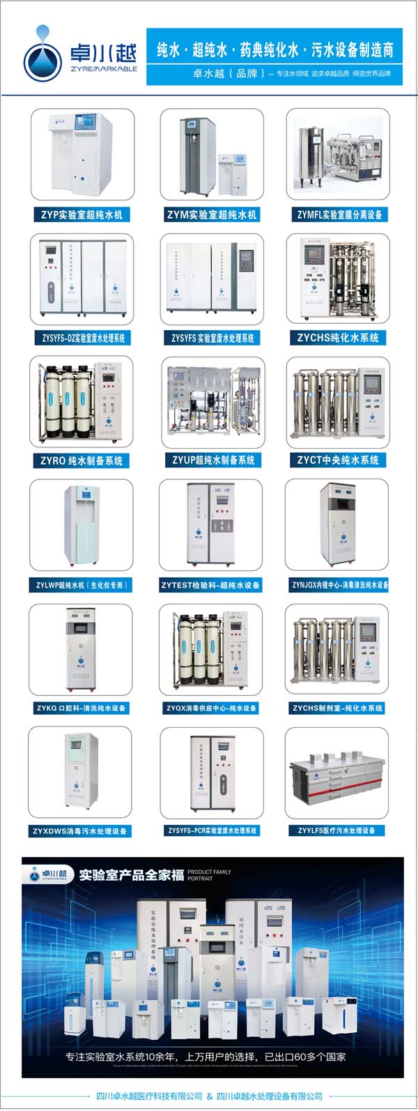四川卓越水處理設(shè)備有限公司(新公司:四川卓水越醫(yī)療科技有限公司)成立于2012年,是一家集研發(fā)、生產(chǎn)、銷售、售后為一體的綜合性水處理廠家,專業(yè)研發(fā)生產(chǎn)實(shí)驗(yàn)室超純水系統(tǒng)、醫(yī)療純水系統(tǒng)、藥典純化水系統(tǒng)、工業(yè)超純水系統(tǒng)、商用純水系統(tǒng)、廢水處理系統(tǒng)、膜分離系統(tǒng)及相關(guān)水處理系統(tǒng),目前公司在四川成都,擁有4000M2現(xiàn)代化的生產(chǎn)基地和營(yíng)銷服務(wù)中心,并在全國(guó)各省份建立了完善的售后服務(wù)網(wǎng)點(diǎn)。