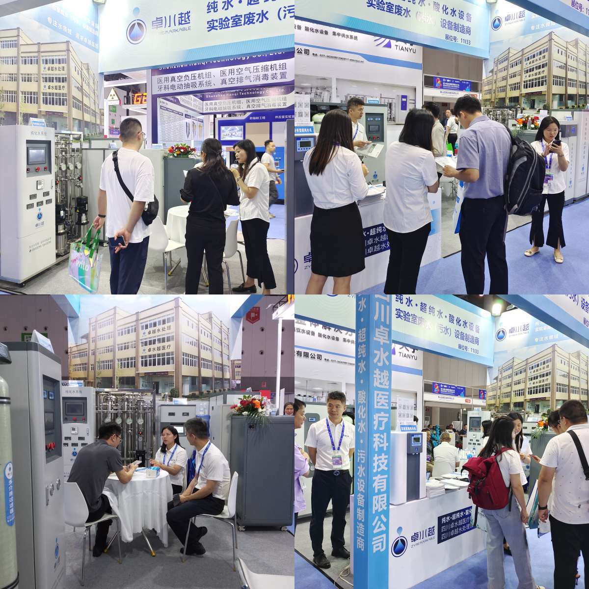 展會(huì)現(xiàn)場人潮如涌,各大展區(qū)熱鬧非凡,本次展會(huì)我司亮相的產(chǎn)品均為全新升級的產(chǎn)品,型號為:實(shí)驗(yàn)室超純水機(jī)系列:常規(guī)分析型超純水機(jī)ZYC、微量分析型超純水機(jī)ZYM、超級微量型超純水機(jī)ZYP;醫(yī)用純水備: 內(nèi)鏡室純水設(shè)備 ZYNJQX 、口腔科清洗純水設(shè)備ZYKQ、供應(yīng)室純水設(shè)備ZYQX、檢驗(yàn)科生化儀超純水機(jī)ZYLWP;實(shí)驗(yàn)室廢水處理設(shè)備系列:實(shí)驗(yàn)室綜合廢水處理系統(tǒng)ZYSYFS、基礎(chǔ)型實(shí)驗(yàn)室廢水處理系統(tǒng)ZYSYFS-D;制劑室純化水系統(tǒng)ZYCHS以及卓水越今年推出的新品——ZYWS微酸性電解水生成器等。