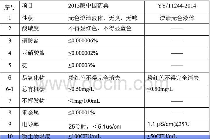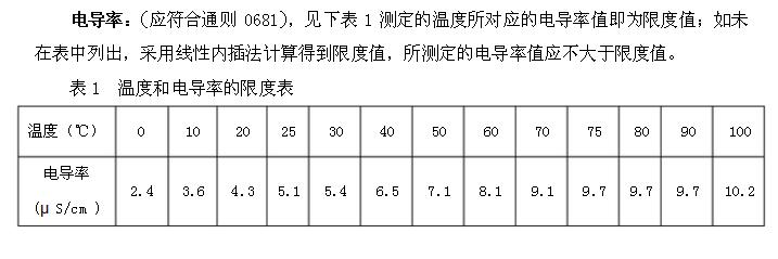 本品為飲用水經(jīng)蒸餾法、離子交換法、反滲透法或其他適宜的方法制得的制藥用水,不含任何添加劑。