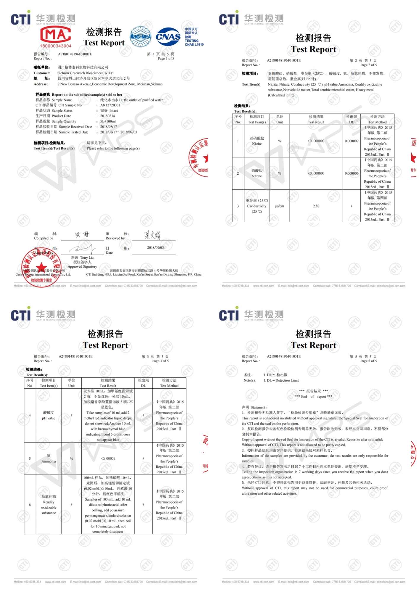第三方水質(zhì)檢測(cè)資料如下: