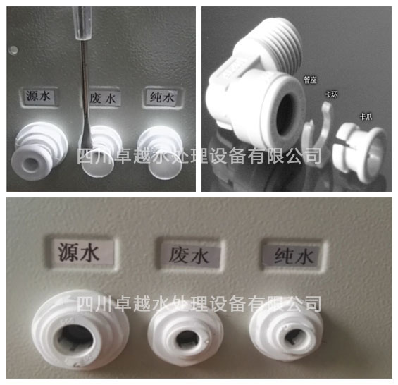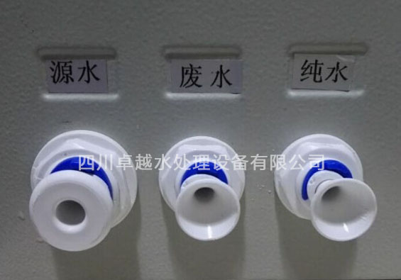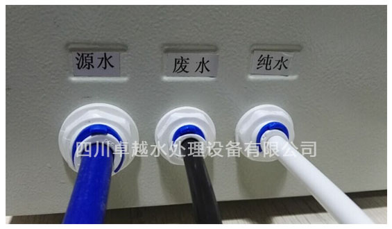 超純水機(jī)在出廠前都會(huì)用堵頭,堵著源水,廢水,純水三個(gè)接口。如圖所示: