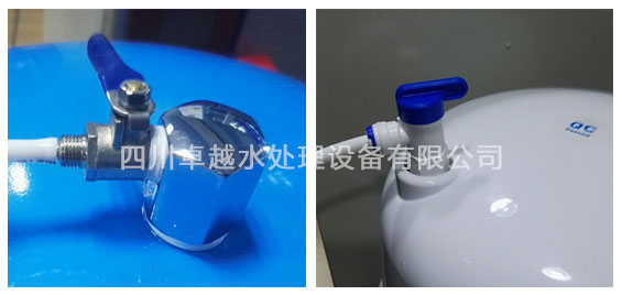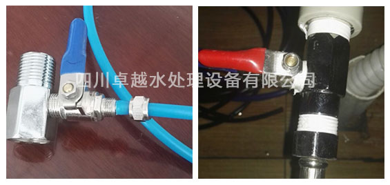 二、在配件箱里找到藍(lán)色PE管,然后與不銹鋼三通接頭連接,并連接自來(lái)水。藍(lán)色PE管另一端連接到純水機(jī)源水接口即可。如圖所示: