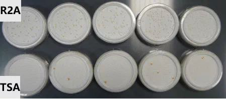 實驗結(jié)論:純水中細菌培養(yǎng)用培養(yǎng)基推薦(R2A vs TSA) R2A。