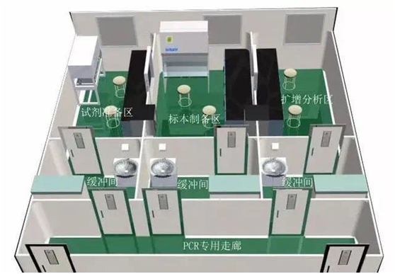 ①人流:按照從試劑準備區(qū)→樣品制備區(qū)→擴增區(qū)→擴增產(chǎn)物分析區(qū),不得逆向流動。